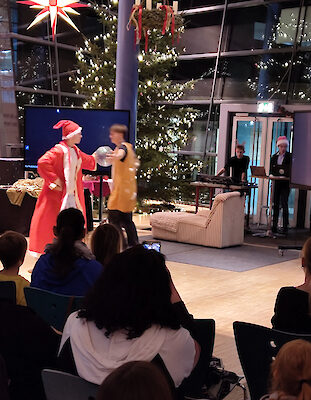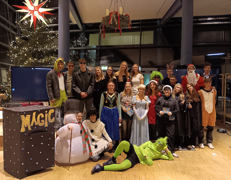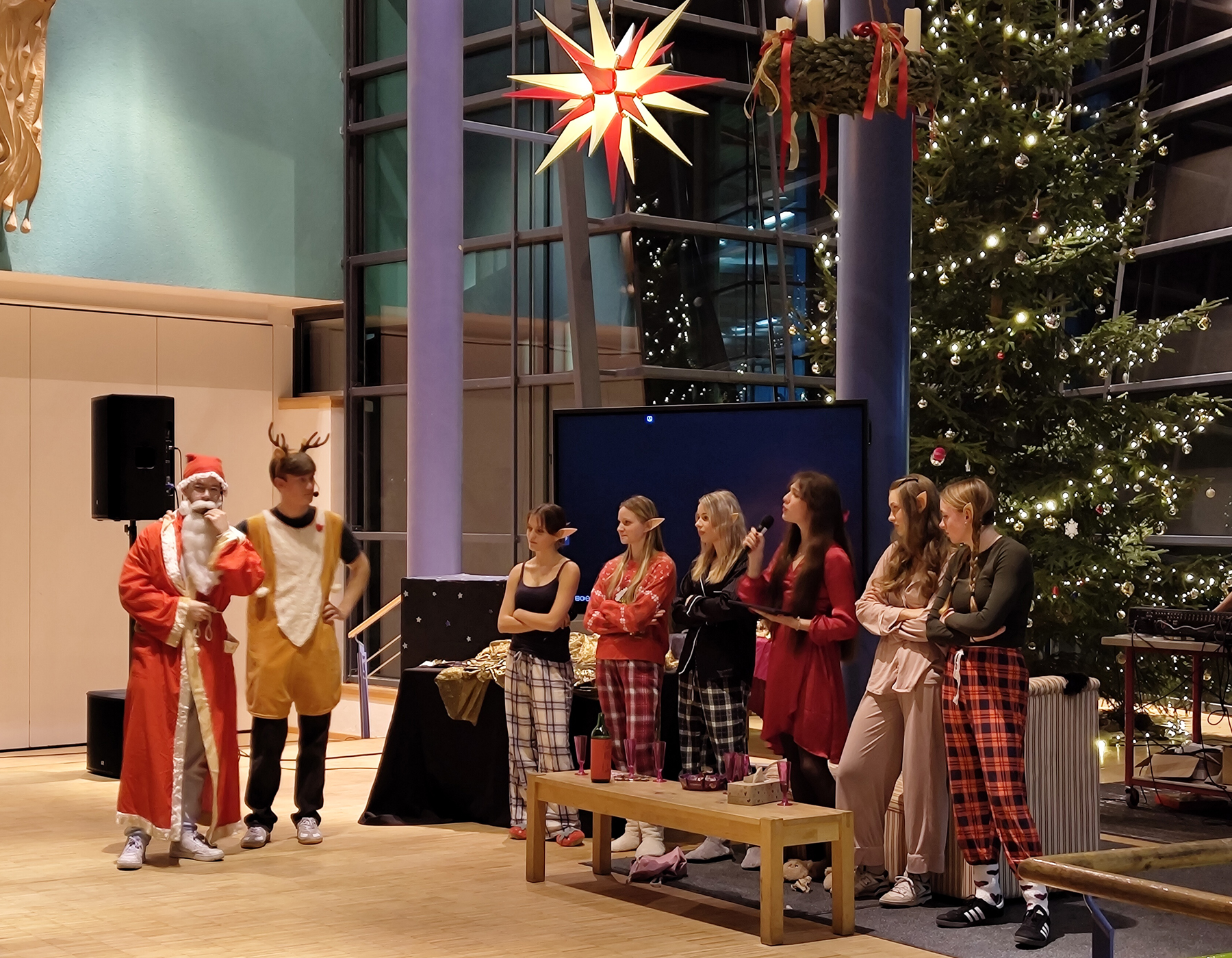 Mrs. Nowotnick und ihr 11 Leistungskurs Englisch haben wieder ein Stück für die alljährlche Weihnachtsaufführung einstudiert. Seit vielen Jahren ist es eine Tradition in der Weihnachszeit im Johanneum am letzten Schultag vor den Weihnachtsferien das Christmas Play für alle in der Aula bzw. im Foyer aufzuführen, bevor es dann in die Ferien geht. Die erste öffentliche Aufführung findet jedoch immer einige Tager vorher statt, nämlich zum Lebendingen Adventskalender. In diesem Jahr war das Johanneum Türchen Nummer 18. Einige Eindrücke von der abendlichen Aufführung folgen hier: