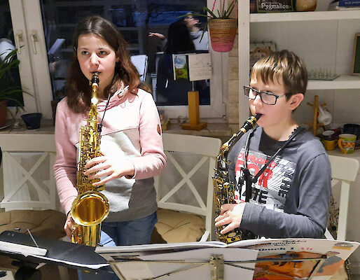 Ein Saxophonworkshop mit Schülern des Johanneums und von Musik und Sprachen fand in den Februarferien am Dienstag, 20. Februar 2024 unter der Leitung von Kerstin Scholz statt. Aus dem GTA Saxophon des Johanneums waren mit dabei: Matilda Mank und Thaddeus Brand. Bei diesem ersten Workshop für Anfänger ging es primär um erste Erfahrungen des Ensemblespiels - aufeinander hören, gemeinsam musizieren. Es hat uns allen viel Spass gemacht. An den erarbeiteten Stücken wird im GTA weiter gearbeitet.