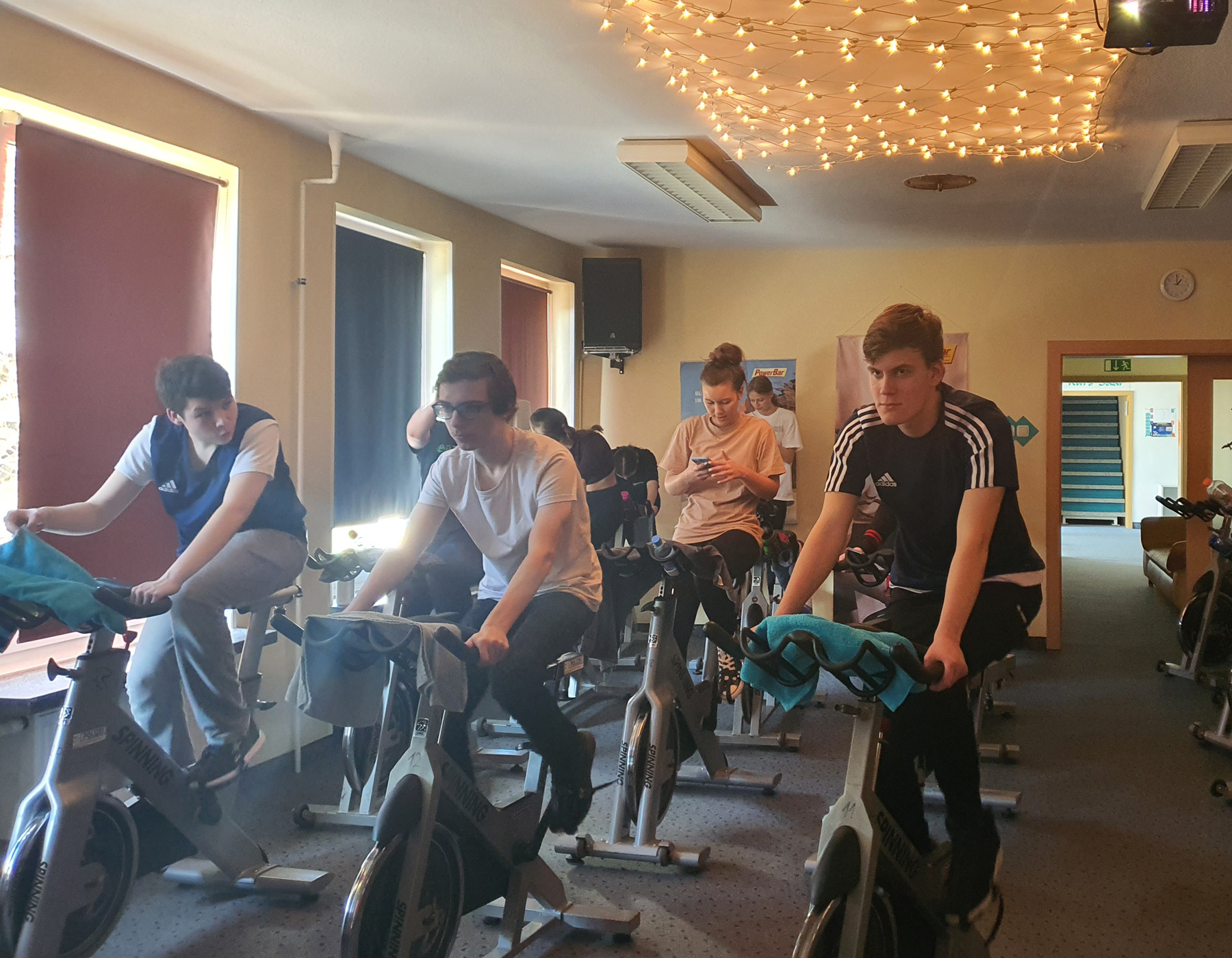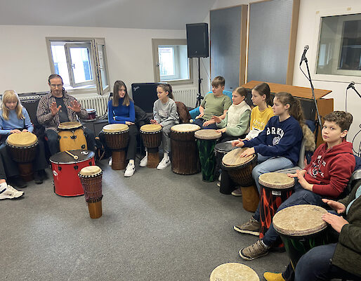 Für die sechste Jahrgangsstufe wurde ein Trommelkurs in der KuFa angeboten. Cecilia Wersch aus der Klasse 6c reflektiert: "Das war lustig. Wir hatten verschiedene Trommeln gehabt: aus Tierfell und aus Plastik. Wir haben den Song "Believer" getrommelt. Das hat gut geklappt. Danach mussten wir so schnell wie möglich auf die Trommeln hauen." Außerdem fand im Foyer Morgensport statt. Hierzu sagt Cecilia Wersch: "Wir habenein paar Übungen durchgeführt, z.B. Springen und Situps. Dann mussten wir eine Weile unsere Arme zur Seite strecken. Außerdem haben wir noch Kniebeugen gemacht: Frau Manka hat ein Lied abgespielt. Wenn die Sänger 'up' sangen, mussten wir kurz hochkommen und bei 'down' wieder nach unten sinken."