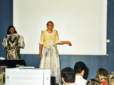 Die Schüler lernten ausgewählte Szenentexte auf Deutsch und Englisch und ein kleiner Chor studierte mit einem Flötenensemble Lieder der englischen Renaissancezeit ein. Dazu wurden Videoclips über London und Stratford eingespielt. Die erste Aufführung fand am 21. Juni 2000 statt und war ein Riesenspaß und Erfolg für die damaligen 11er.
