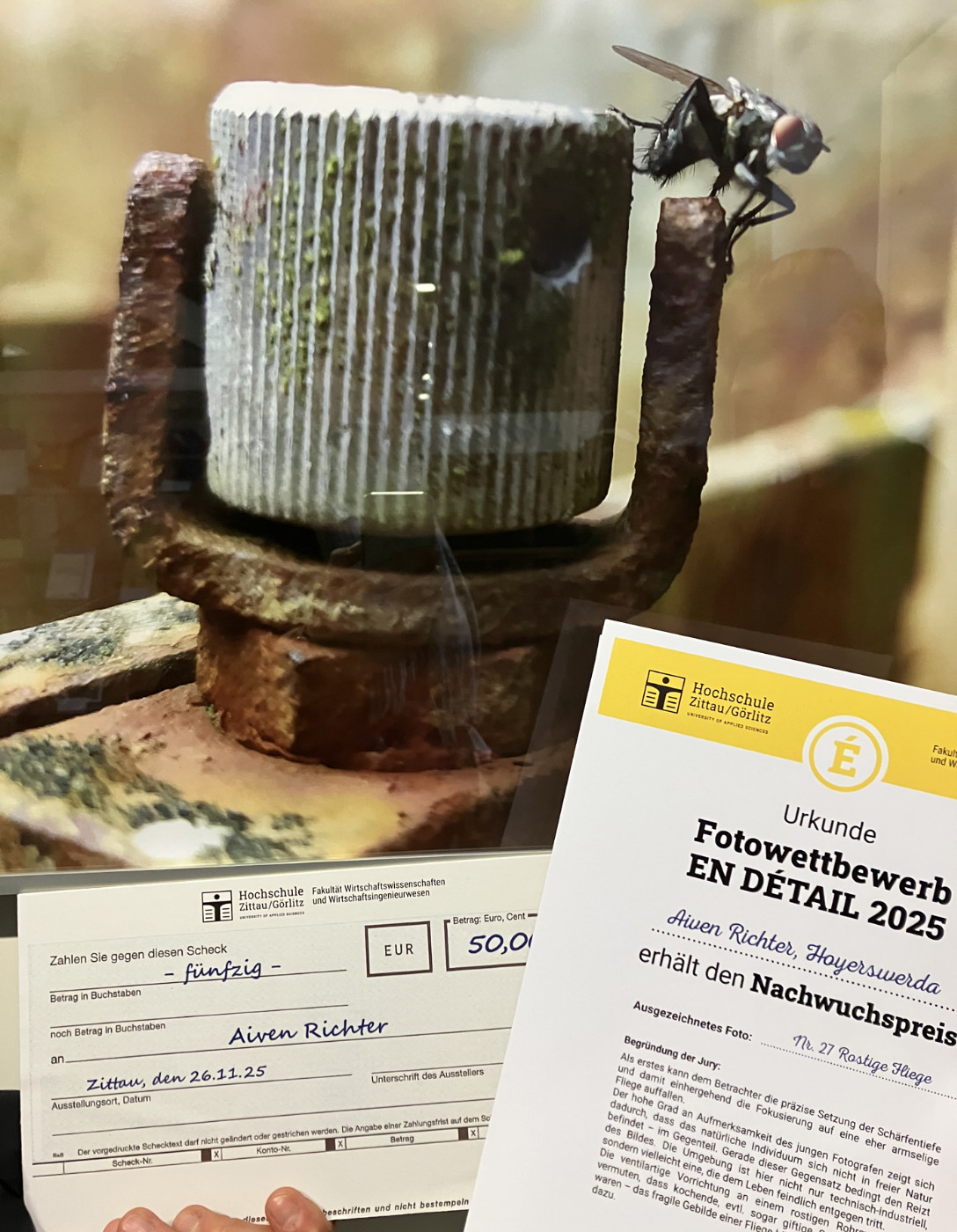 So auch ein Bild unseres Schülers Aiven Richter, der mit seinem Foto "Rostige Fliege" die Jury überzeugte und den Nachwuchspreis erhalten hat. Herzlichen Glückwunsch!